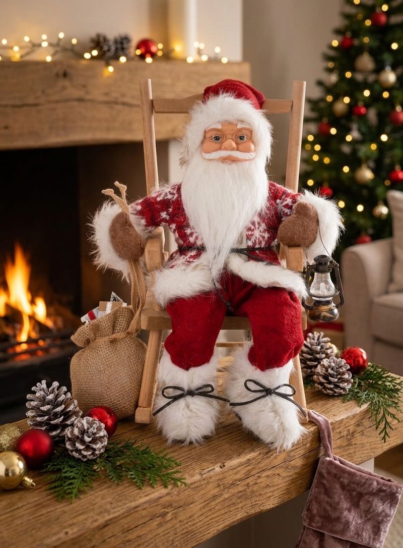 • Dekorácia MagicHome sediaci Santa je vkusným doplnkom vášho interiéru počas vianočných sviatkov. Dekorácia je vyhotovená z plastu, bavlny, tkaniny, dreva a kovu. Výška je 46 cm.