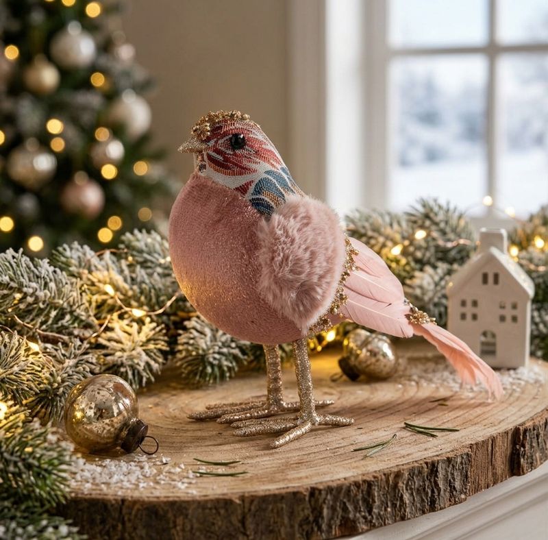 Vtáčik MagicHome Vianoce, ružový, 20x8x14 cm, páperový