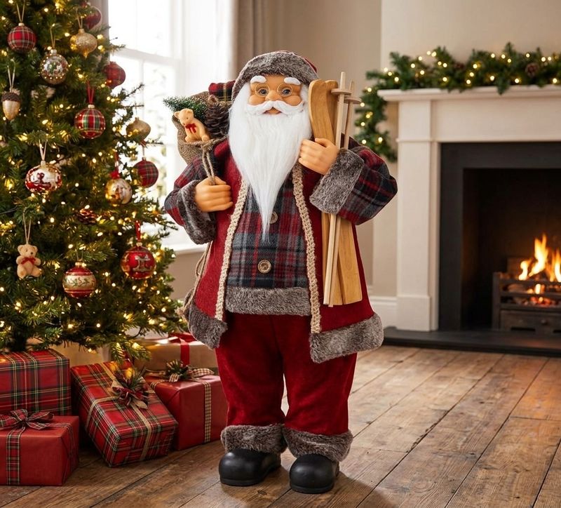 Vďaka realistickým detailom, ako je biela brada, okuliare, darčekový vak a vianočný stromček, pôsobí veľmi autenticky a stane sa výrazným prvkom vašej sviatočnej výzdoby. Santa sa hodí na umiestnenie pod stromček, do obývacej izby alebo ako súčasť zimnej dekorácie vo vstupnej hale.
