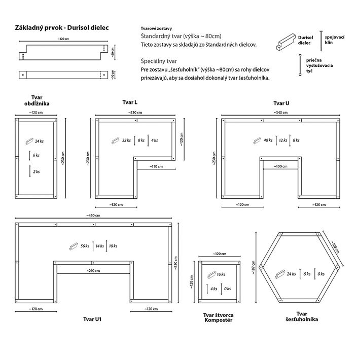 | Durisol vysoký záhon: tvar L | Zelená | 230x230x80 | 620 | 32 | 8 | 4 | zostava | 1 121,27 € |