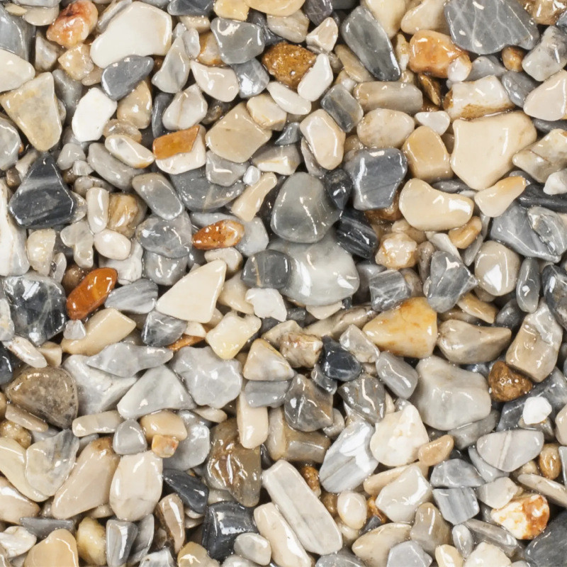 Povrch GUILIA je mramorový kamienok šedohnedej farby, omieľaný lomový kameň bez ostrých hrán frakcie 4-8 mm.