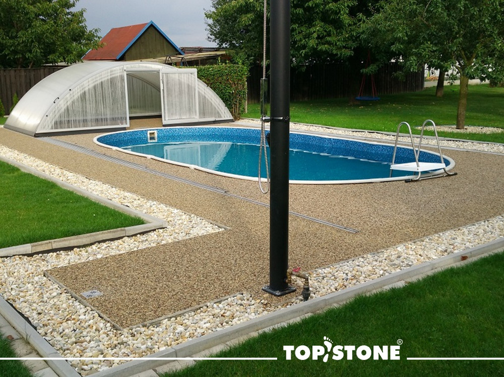 Cena povrchu zahrňuje certifikované spojivo (živicu zl. A a tvrdidlo zl.B) a plnivo (kvalitné drvené, niekoľkokrát omieľané, prané a triedené riečne kamienky) pri odporúčanej hrúbke povrchu 1,4 cm. Cena nezahrňuje dopravu a pokládku povrchu.