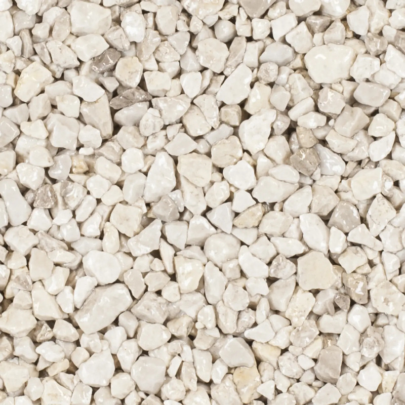 Povrch STELVIO je mramorový kamienok béžovej farby, omieľaný lomový kameň bez ostrých hrán frakcie 2-4 a 4-8 mm.
